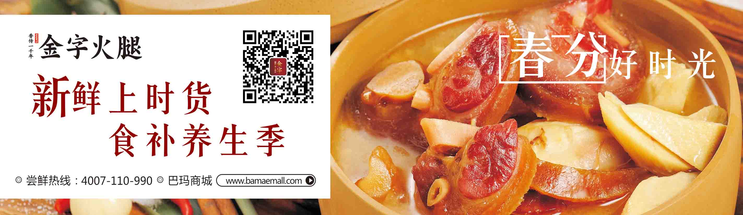 春分之后,竹筍一天一天長高,到清明時肉質開始變老,食之漸漸無復初筍之鮮嫩口感。而待到“江南四月櫻桃紅,筍芽出土千萬叢”時,則筍期已過,再欲嘗鮮筍之美味,只好更待明年了。其實“腌篤鮮”可以引申成一種烹調的手法:火腿咸肉與新鮮肉類的合烹。類似的代表作有很多:咸肉燉蹄髈,火腿蒸鱔魚等等。金字三月新腿上架,備一條火腿,過了季節(jié),用火腿做點其他時令的“腌篤鮮”美食是一個不錯的選擇。