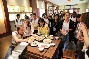 6月24日“海外名校走進金華古村落”活動第一季的42名來自世界各國名校教授、學(xué)生乘坐著BRT專車,參觀了金字建設(shè)的中國火腿博覽館和世界火腿博覽館,了解傳承千年的中國火腿文化。想了解現(xiàn)代與傳統(tǒng)交融的金華,金華火腿自然是不可或缺的元素,在金字總部的國內(nèi)首個中國火腿博覽館,學(xué)生們深入地了解了金華火腿文化的千年歷史傳承。在中國火腿博覽館內(nèi),記錄了金華火腿從唐朝起就聞名天下的歷史淵源……